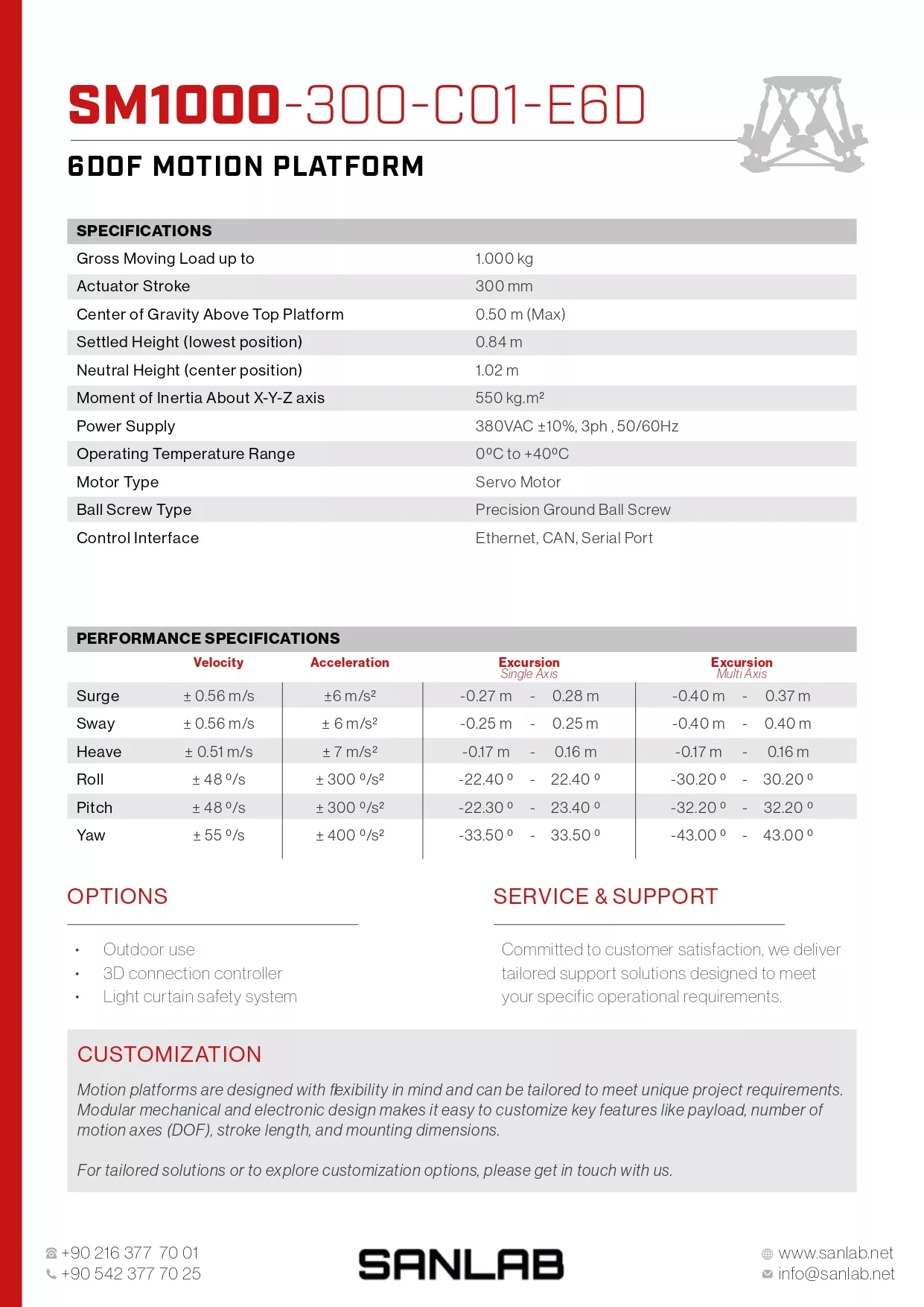 SMotion1000 is a state-of-the-art 6DOF (Six Degrees of Freedom) motion platform designed to provide precise movement and control for various high-tech applications. It boasts an impressive payload capacity of 1000 kilograms, making it a versatile solution for a range of industries.