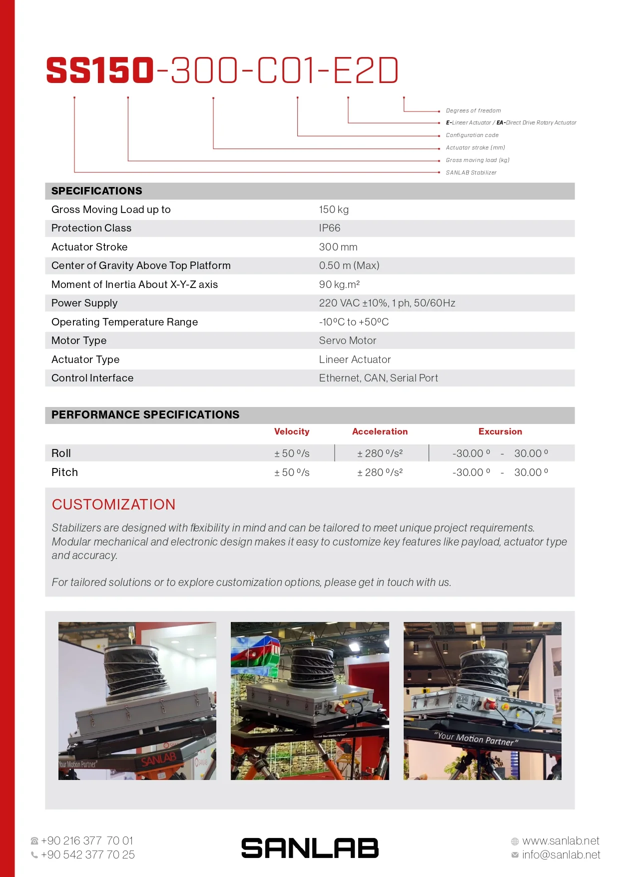 SANLAB’s Heavy Payload Stabilizer series provides 2-DOF roll and pitch stabilization for reliable performance in marine environments, with a payload range of 150 kg to 300 kg.